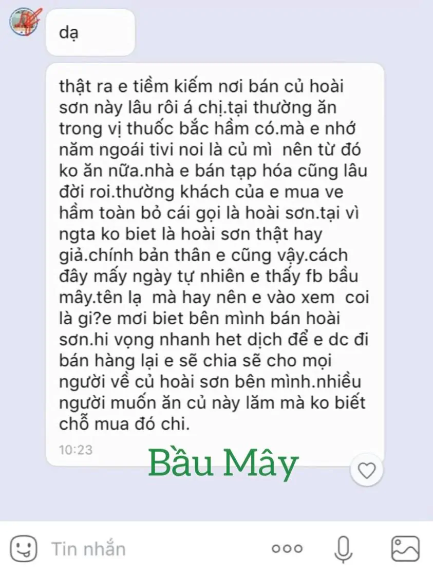 Thực sự phải là người hiểu về hoài sơn mới thấy được thật nhiều giá trị của sản phẩm. Hiểu được mong muốn của khách hàng vì vậy Bầu Mây nỗ lực để mang đến cho quý khách hàng những sản phẩm tốt nhất, chất lượng nhất.