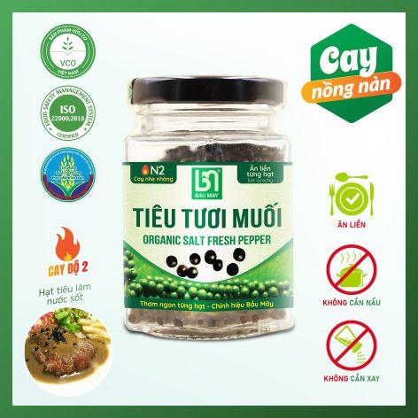 Lưu ý sử dụng: Tiêu tươi muối có muối tự nhiên nên khi nhìn vào có màu trắng của bào tử muối giúp thơm ngon hơn, có thể bảo quản lạnh sau khi mở nắp.